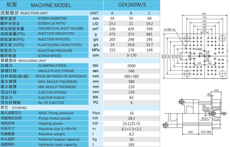 GEK/s servo energy-saving injection molding machine with energy conservation and environmental protection, the closed-loop precision, quick response, low noise characteristics, combined with traditional hydraulic injection molding machine and all the advantages of the fully electric injection molding machine, eagerly anticipates the future development trend of injection molding.